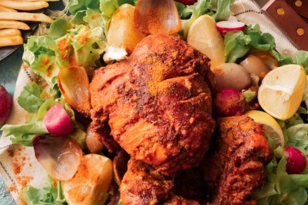 Nikmati kelezatan Makanan Chargha, hidangan ayam khas Pakistan yang dibumbui rempah-rempah khas, dipanggang sempurna untuk cita rasa autentik dan menggugah selera.